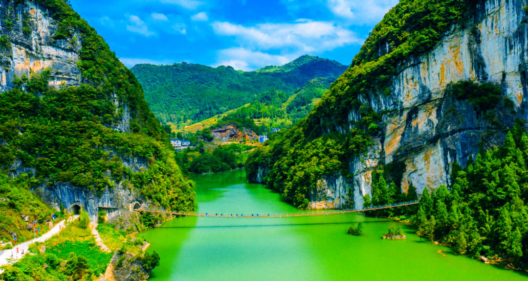 2. 芙蓉江峽谷:兩岸懸崖峭壁,江水碧綠如玉,適合漂流、速滑。