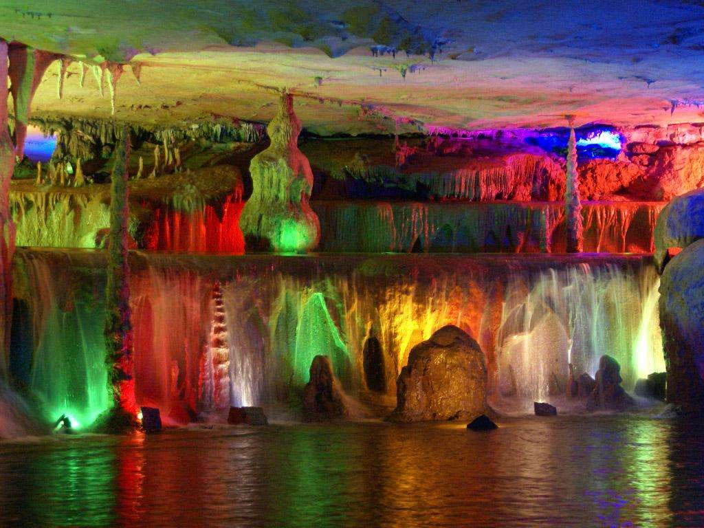 • 世界游覽方式最多的溶洞(步行、滑道、電梯、小火車、浮橋)。