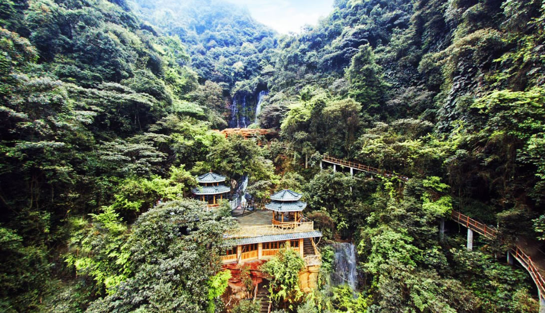 - 規(guī)模:占地9000畝,森林覆蓋率96%,負(fù)氧離子濃度達(dá)2.2萬(wàn)個(gè)/cm³,是天然氧吧。