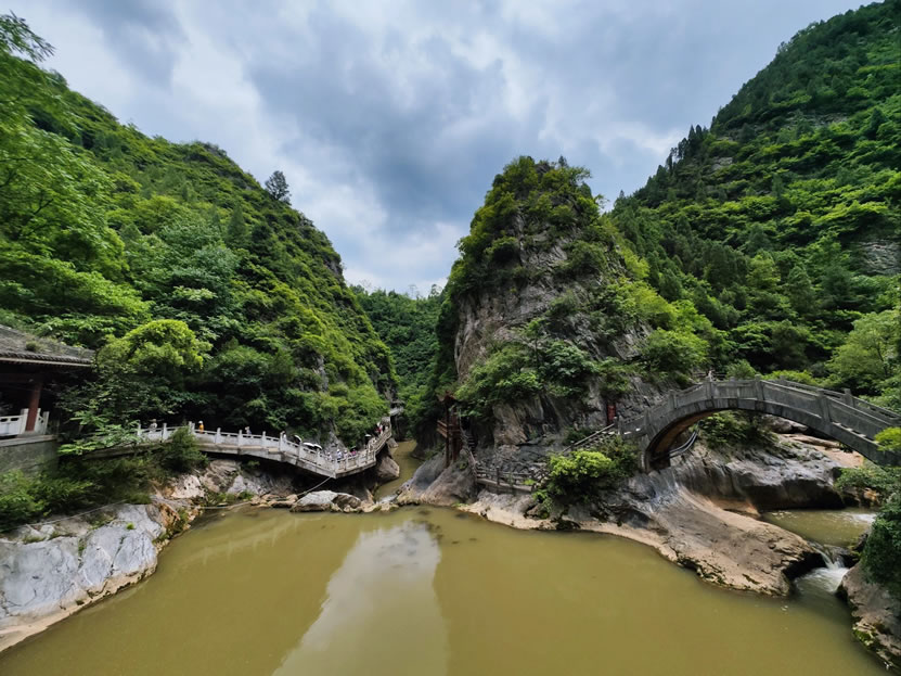 - 魚(yú)竅峽:峽谷內(nèi)潭水相連,瀑布迭次,如“龍?zhí)队吃?rdquo;“珍珠串”等景觀(guān),夏季可賞飛瀑流泉,秋季紅葉漫山。
