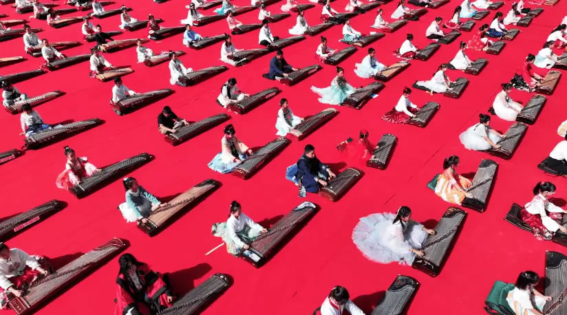 慶國慶·迎中秋“花好月圓”千人古箏展演 (李潔 攝)